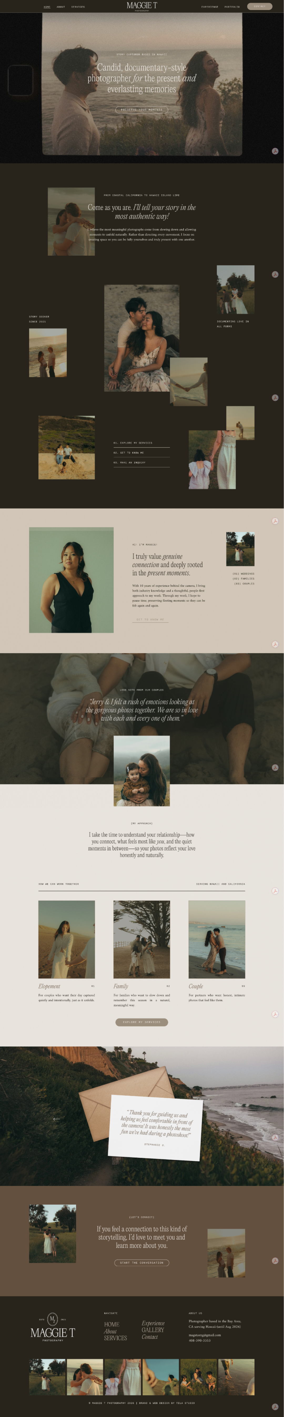 Maggie is a candid, documentary-style photographer who wanted her brand to feel cinematic, nostalgic, and a little moody.